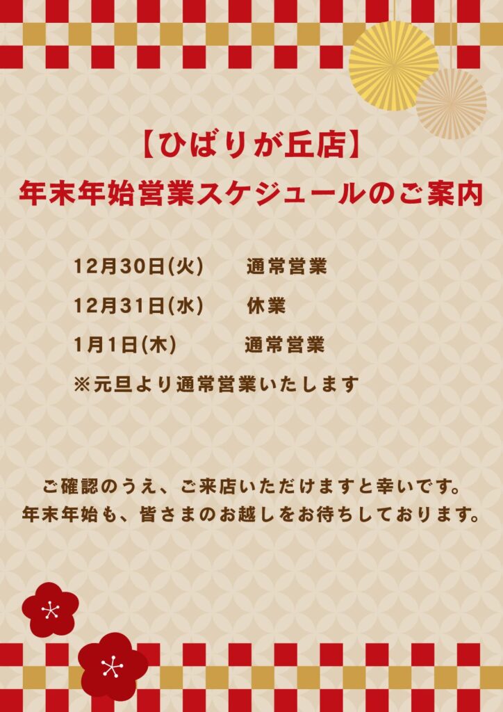 ひばりが丘店 年末年始営業スケジュールのご案内